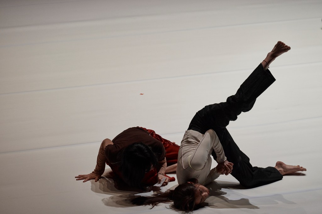 The mythological stories which came down to earth are interwoven with the performer’s bodily experiences (unconsciousness, dream, reproduction and death), and the performers’ stories, that everyone has probably experienced once in their lives, connect to the stories of the audience. And the stories do not stop here. Did someone say that the climate crisis is a crisis of imagination? We would like to experiment to create myths and stories together and see if they can be continued. We have imagined a map which is in the process of being produced: the map on which the destroyed body of Mother Earth (predicting its destructive eruption), beings between male, intersex, female, bisexual and asexual, as well as post-coital and post reproduction in an era of cyborg, cloning, companion species and climate crisis are being created. Keeping this invisible map in mind, we intuitively sense and spread the branches of words. Finally, we hope the words heard and the bodies seen in this performance will be caught in the net of your own imagination rather than being interpreted or captured as information, enabling the grains of your stories to sprout.