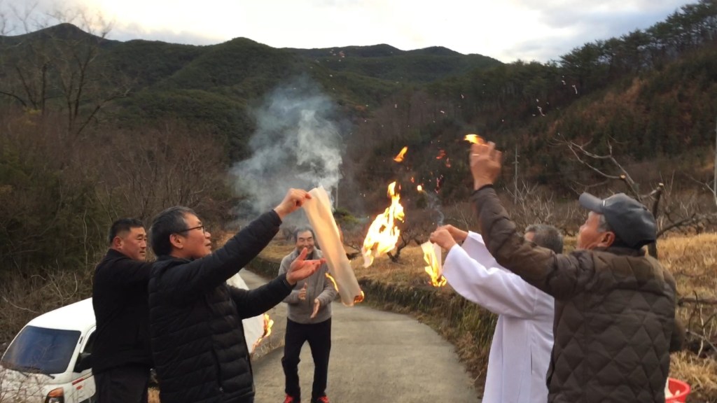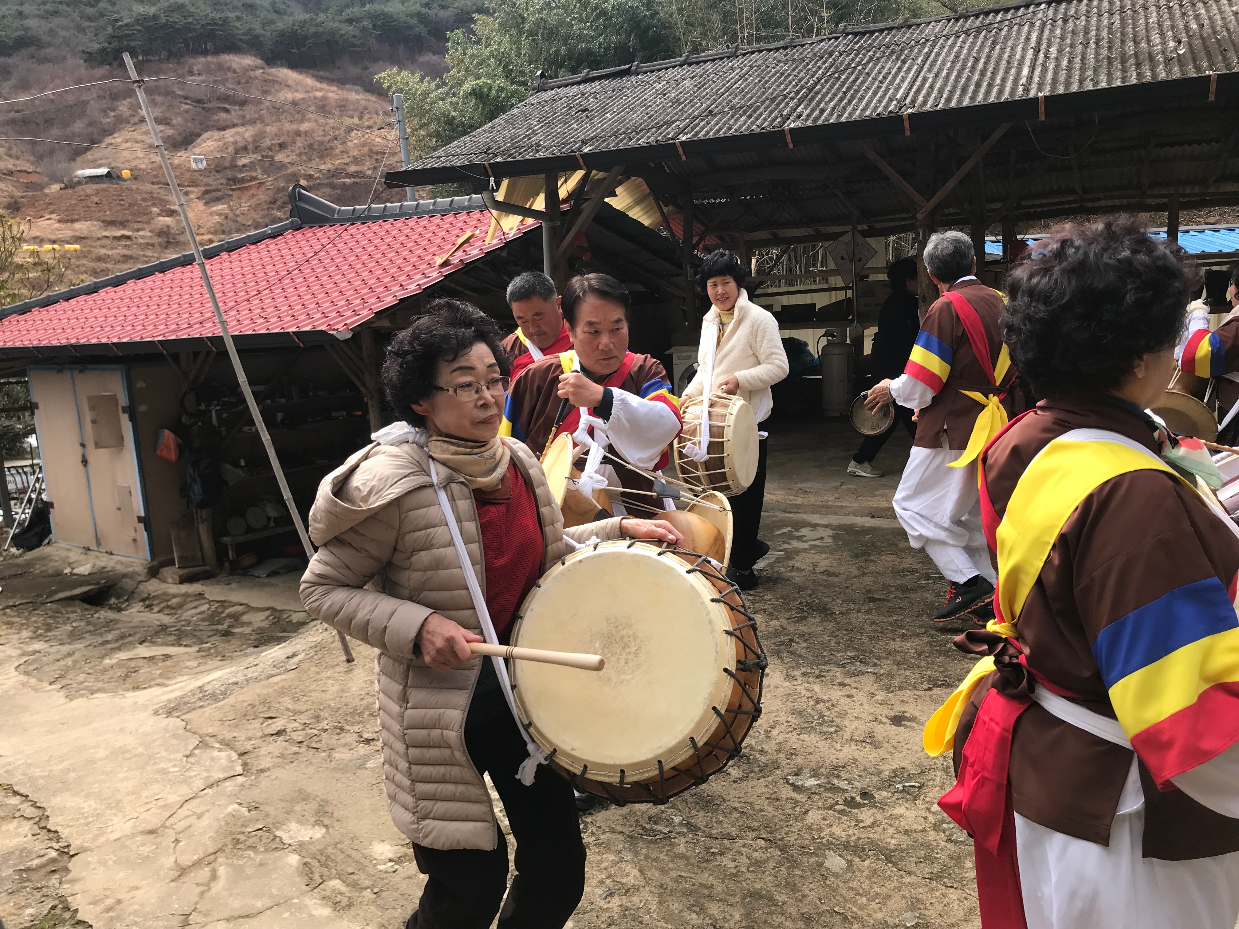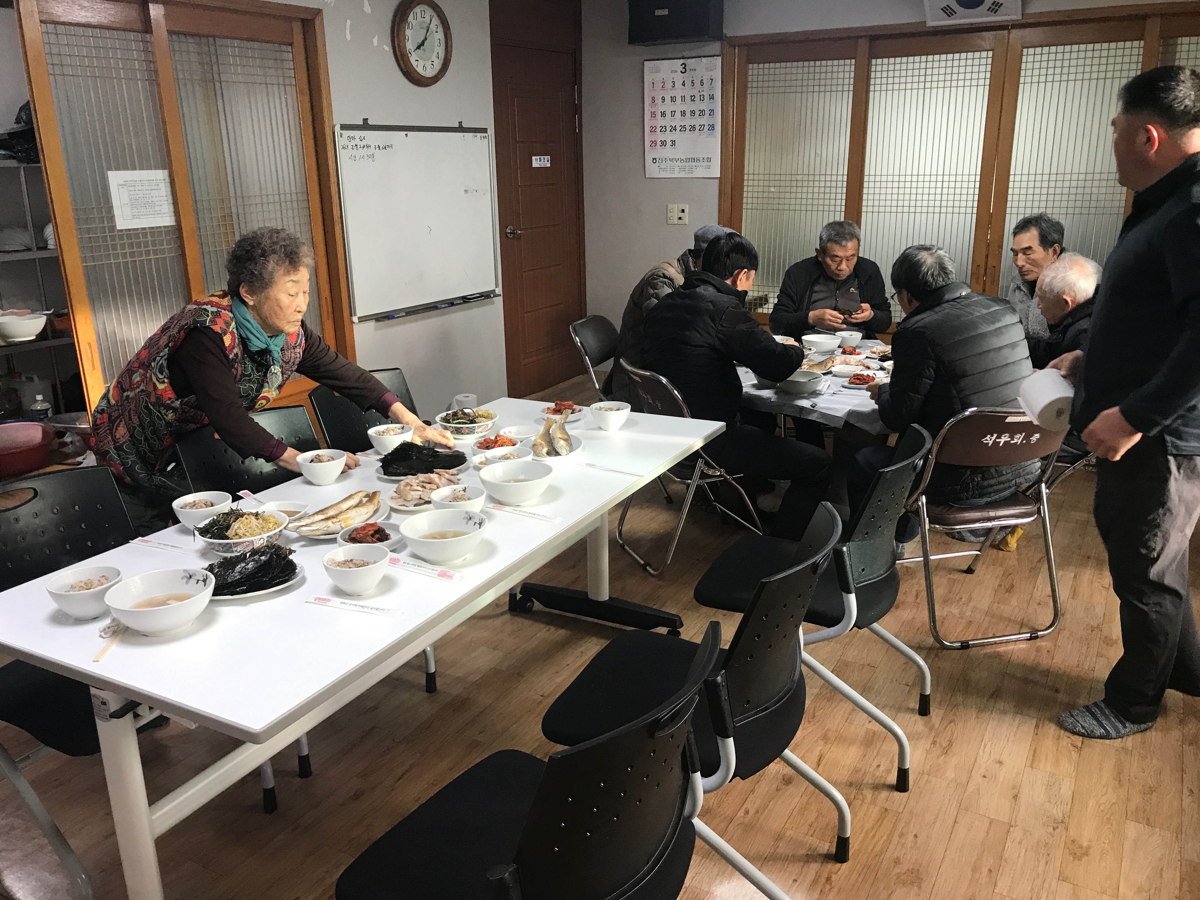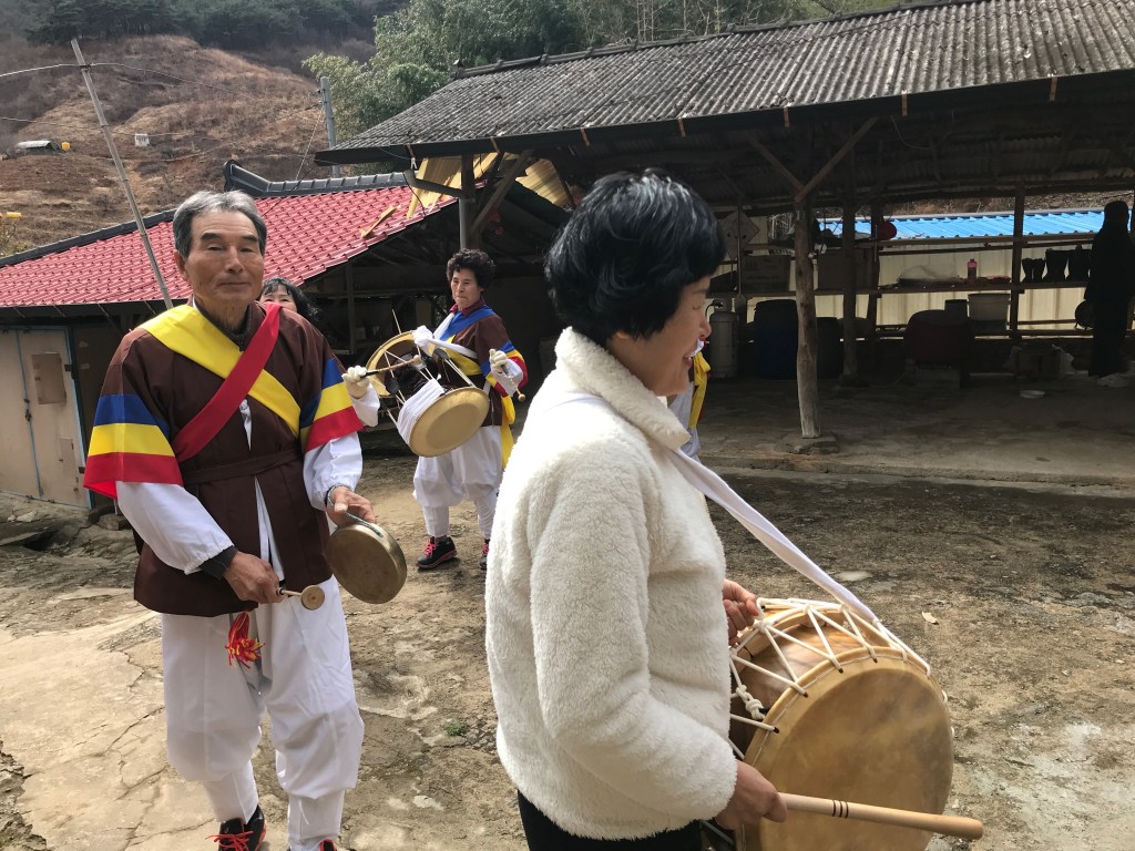 The next day, I visited the Hawon Village Community Center, where all-female farmers gathered for a special event. I had a brief conversation with them, then had a longer discussion with the village headman at the pavilion next to the community center, where he shared his memories of traditional rice agriculture and showed me around another dumbung in the area.